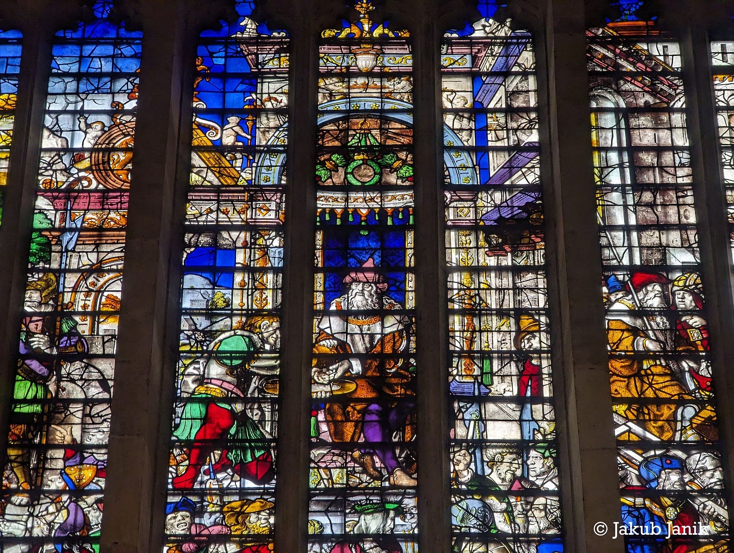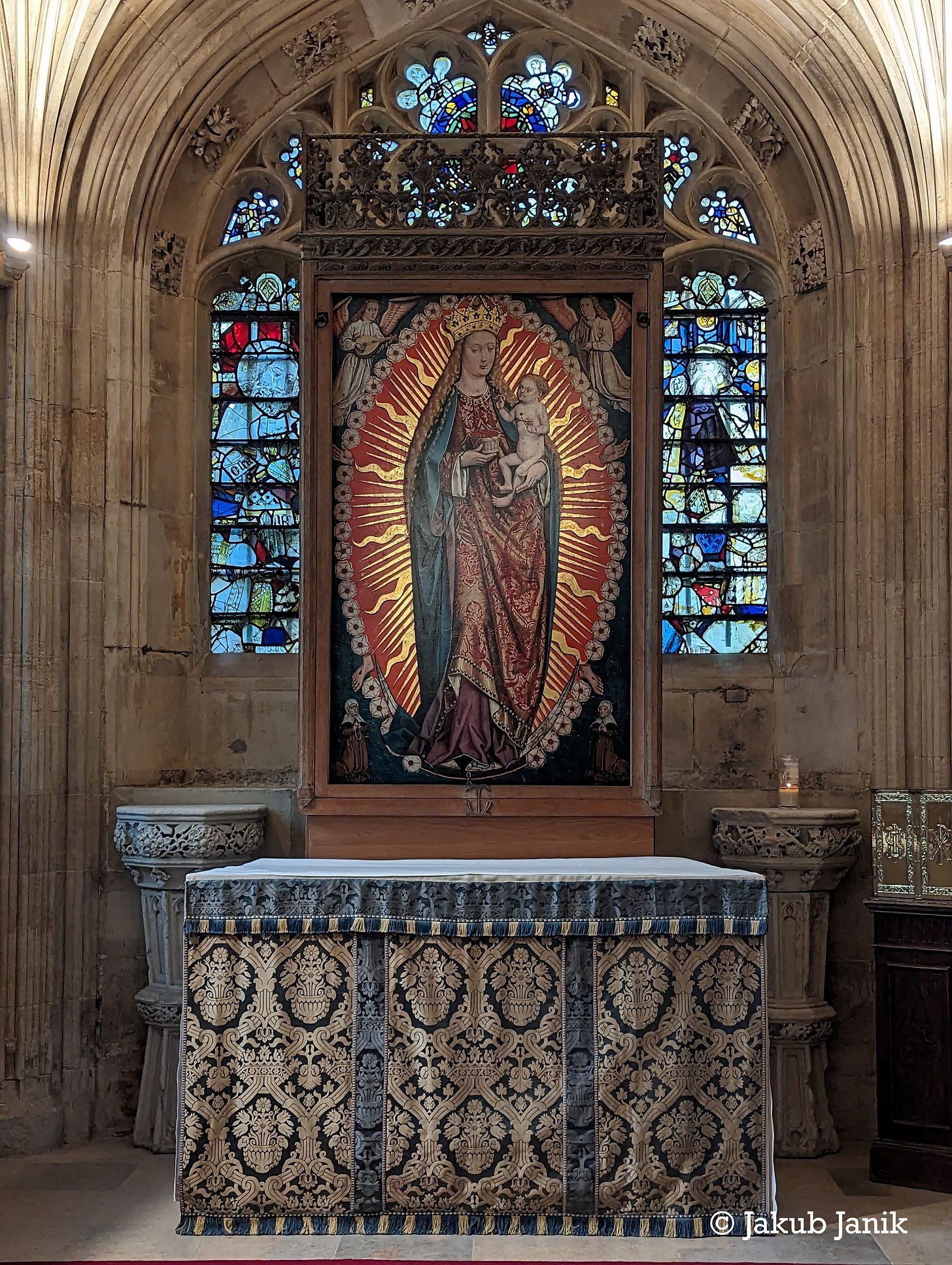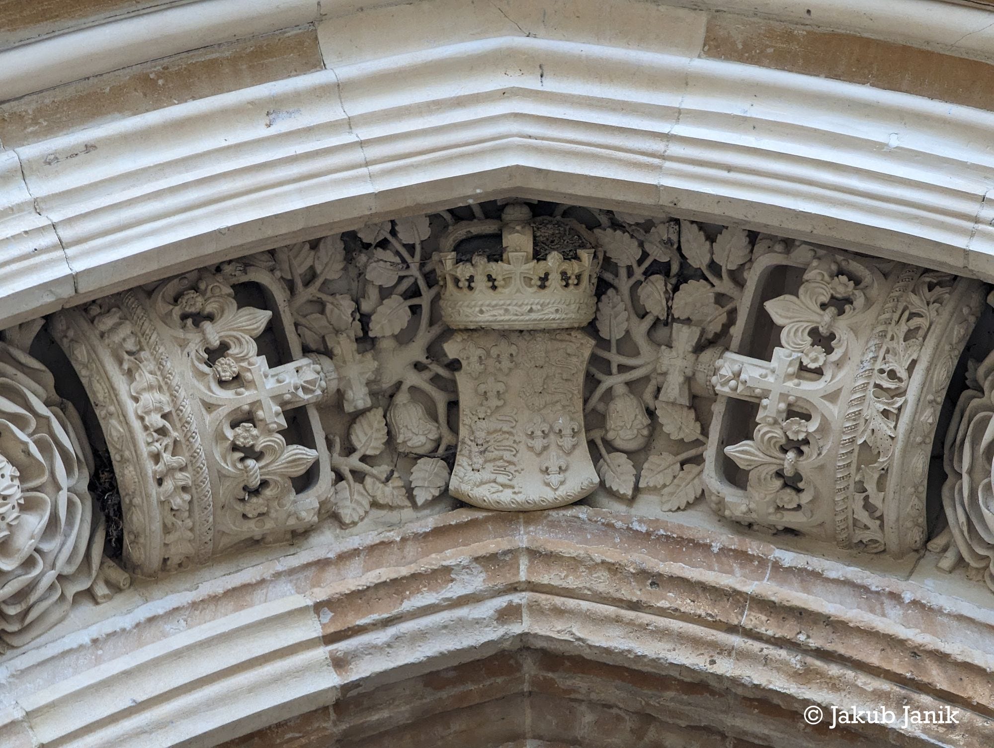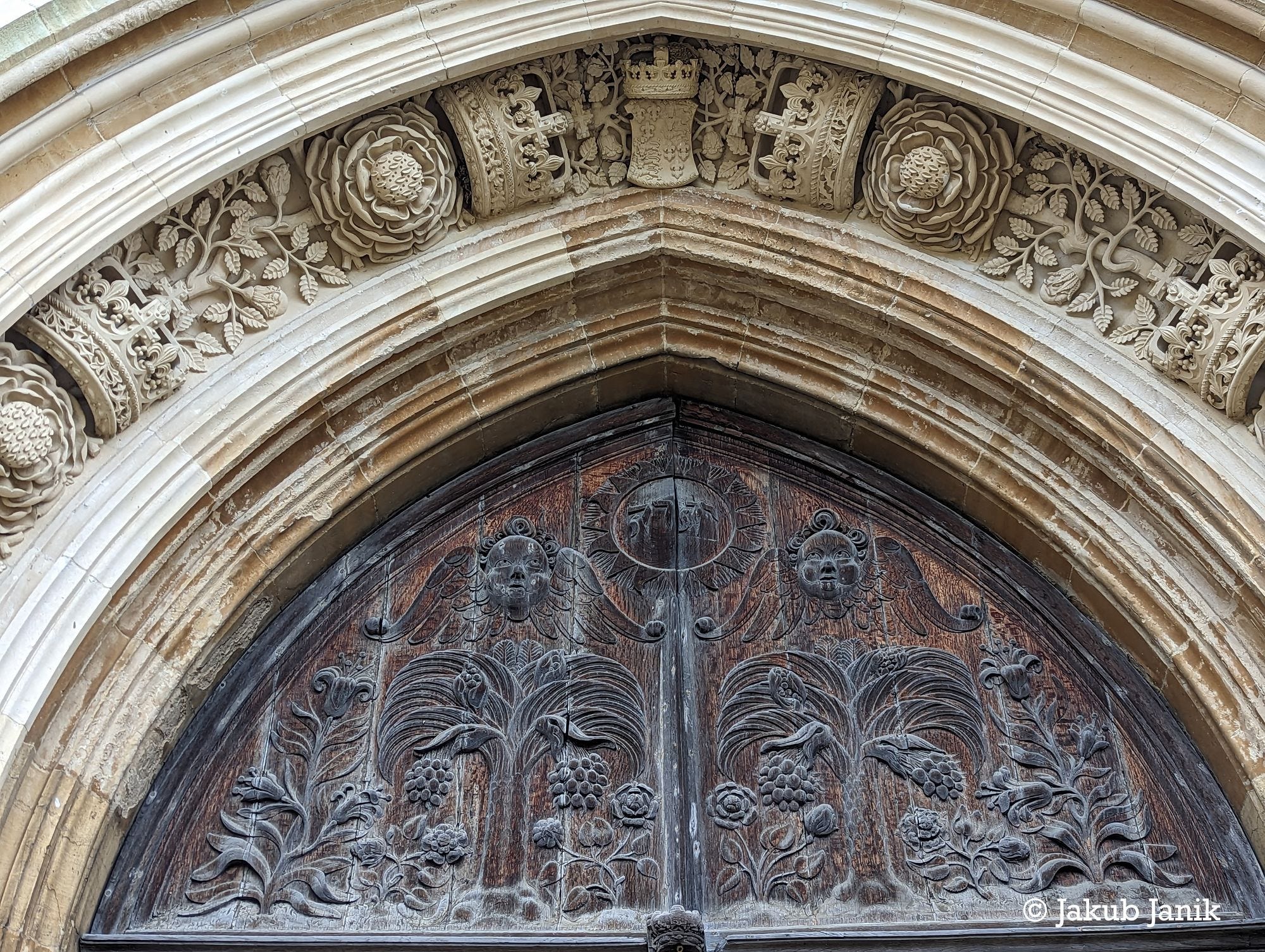 Henryk VIII z dynastii Tudorów zaznacza swoją obecność w wielu elementach wystroju, m.in. wcielił się w króla Salomona na jednym z wspaniałych witraży, a także pozostawił swoje inicjały, wyrzeźbione w potężnej drewnianej przegrodzie chórowej, wspierającej słynne organy kaplicy. Wśród ornamentów imponującej przegrody wypatrzeć można też inicjały jego drugiej żony Anny Boleyn, bo organy ufundowane przez króla w 1532-36 roku miały upamiętnić zawarcie z nią ślubu. Zakrawa to na wyjątkową perfidię, gdyż Henryka VIII znamy dobrze jako despotę i krwawego okrutnika, który miał sześć żon. Pozbywał się ich bez skrupułów, gdy kolejna kobieta budziła jego zainteresowanie i dwie z nich - Anna Boleyn i Katarzyna Howard skończyły na szafocie.