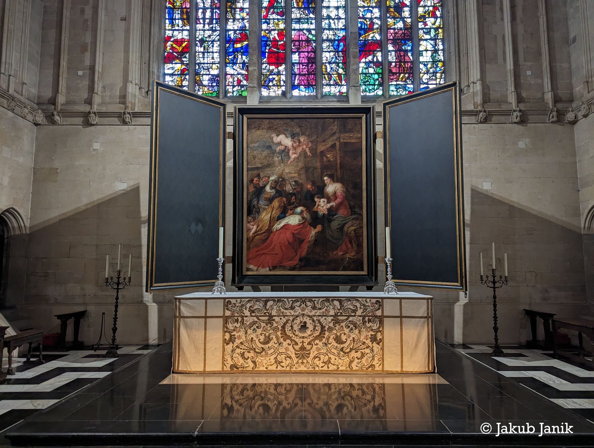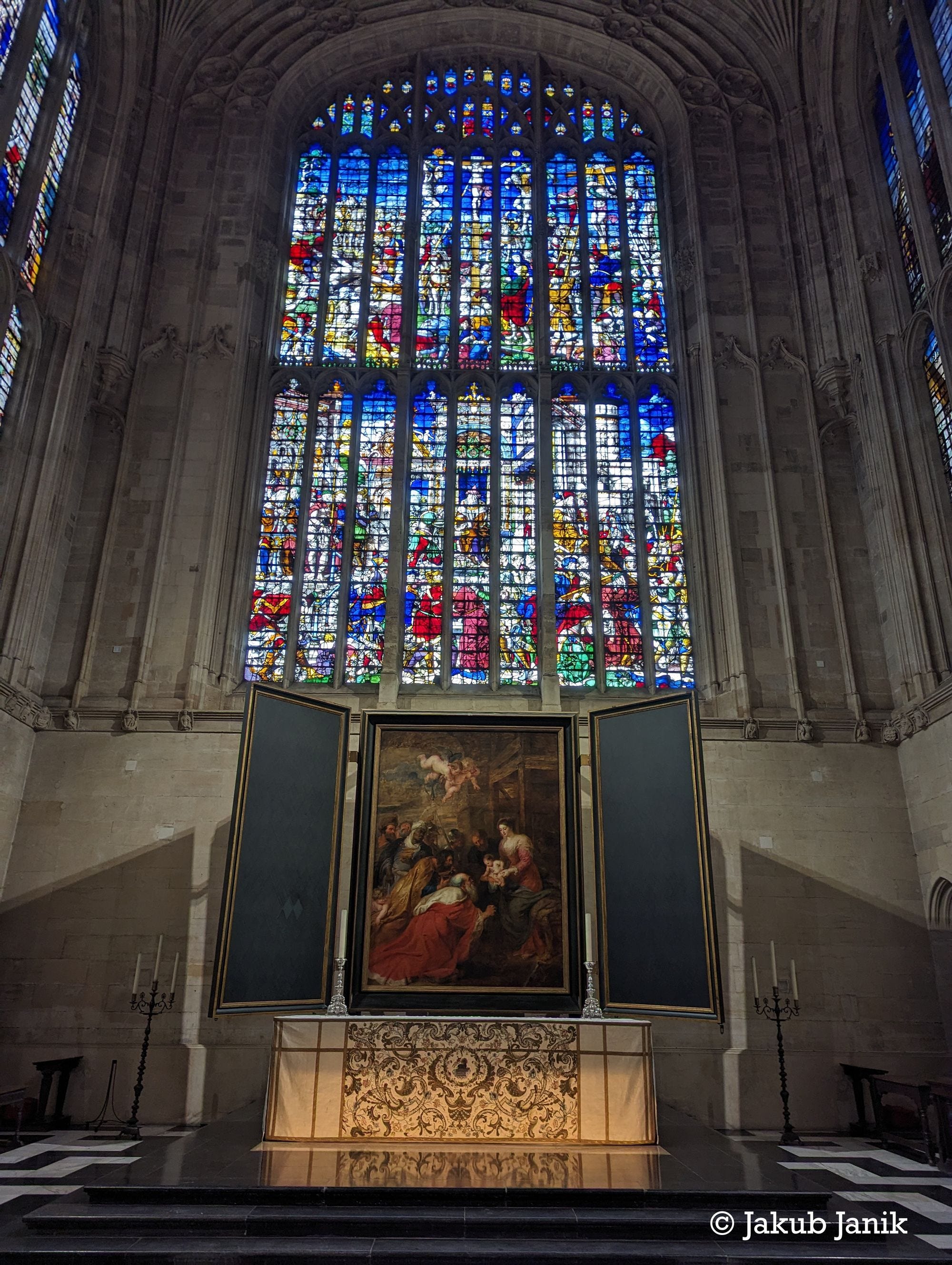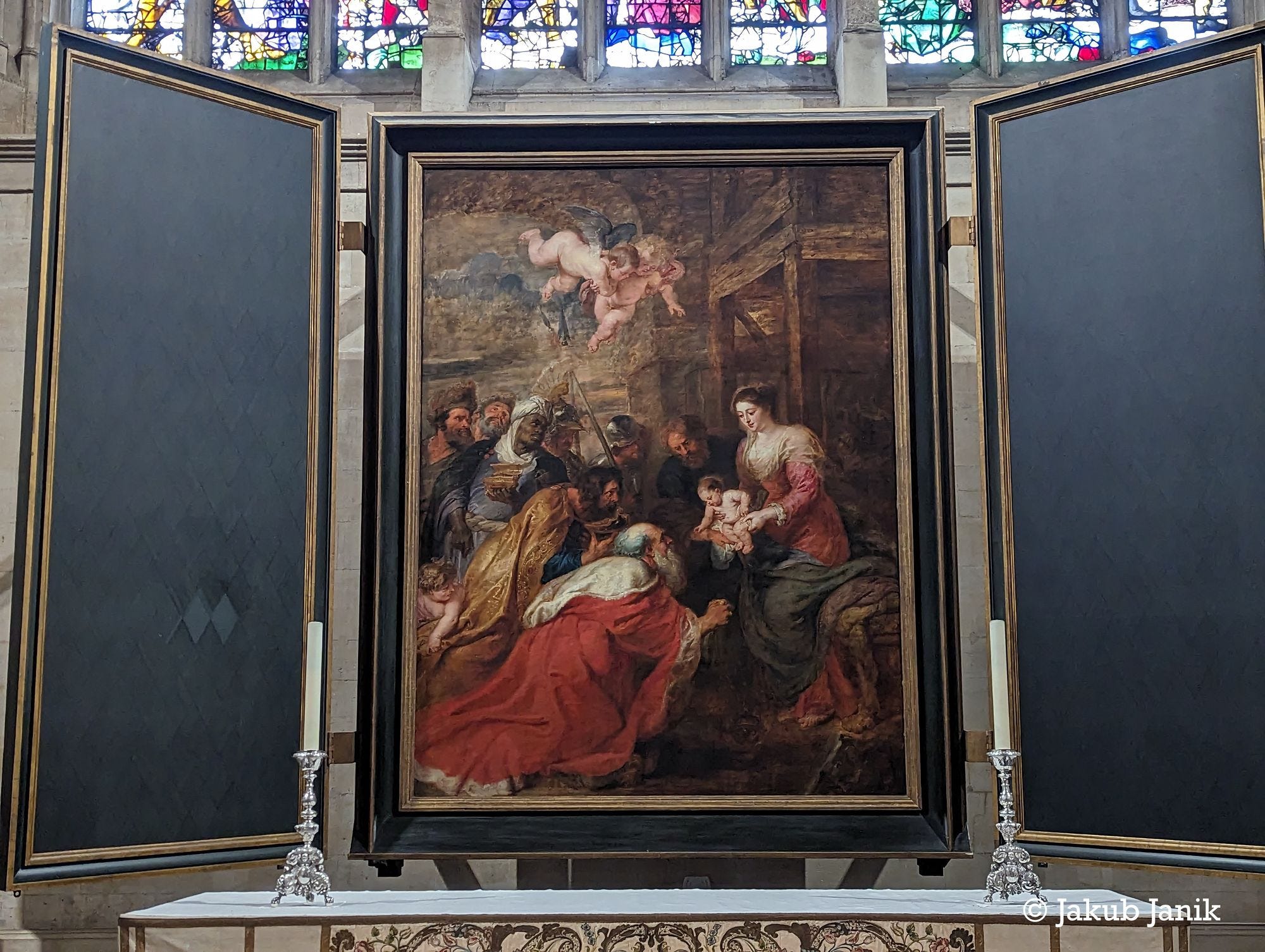 W ołtarzu głównym kaplicy uwagę przykuwa „Pokłon Trzech Króli" Rubensa, który artysta namalował w 1634 roku z przeznaczeniem dla klasztoru w Leuven w Belgii. Do kaplicy w Cambridge monumentalne dzieło trafiło w 1961 roku. Był to dar biznesmena i filantropa Alfreda Allnaffa, który kupił je dwa lata wcześniej na aukcji w Sotheby's za... bagatela (!) 275 tys. euro.