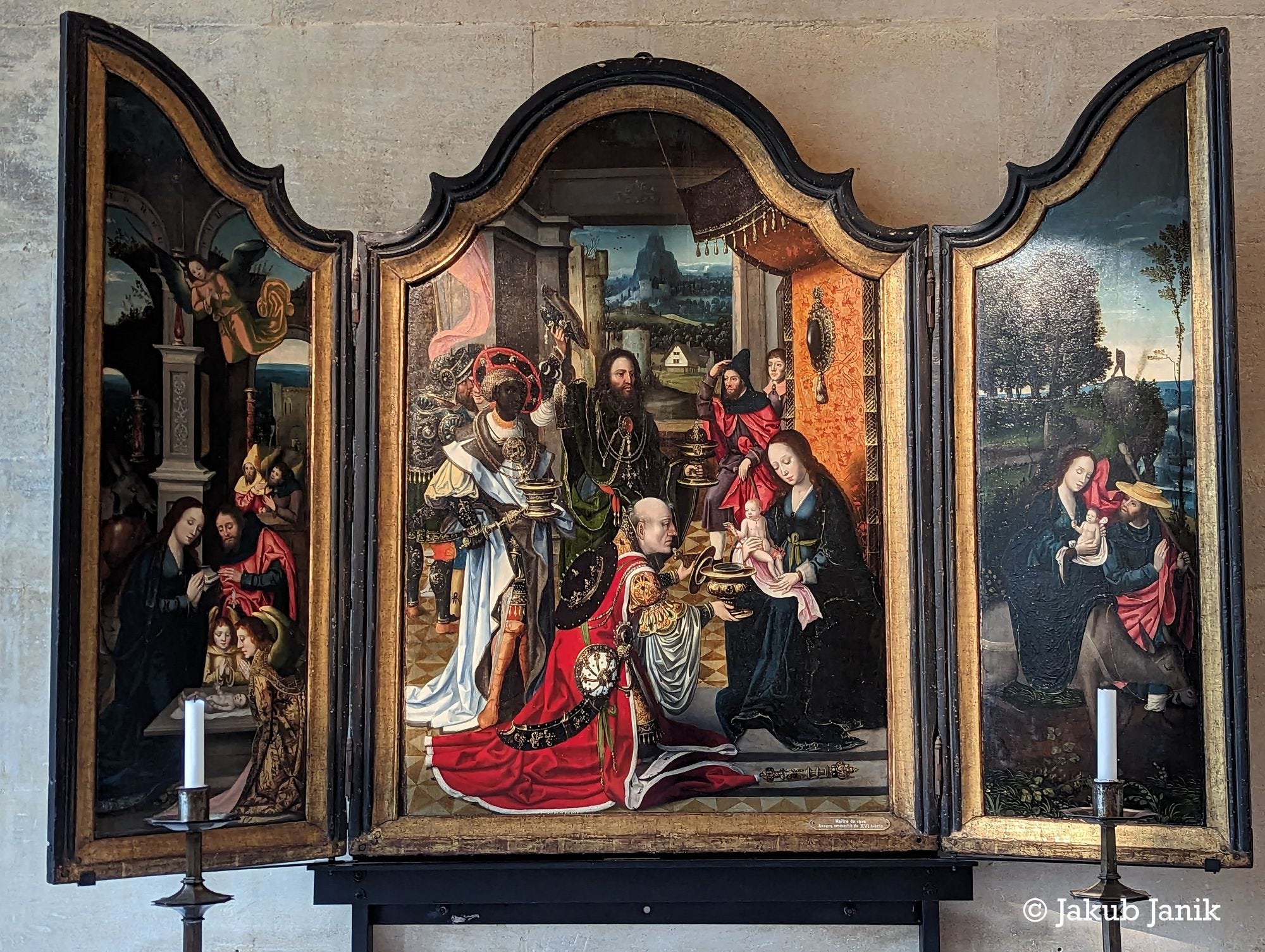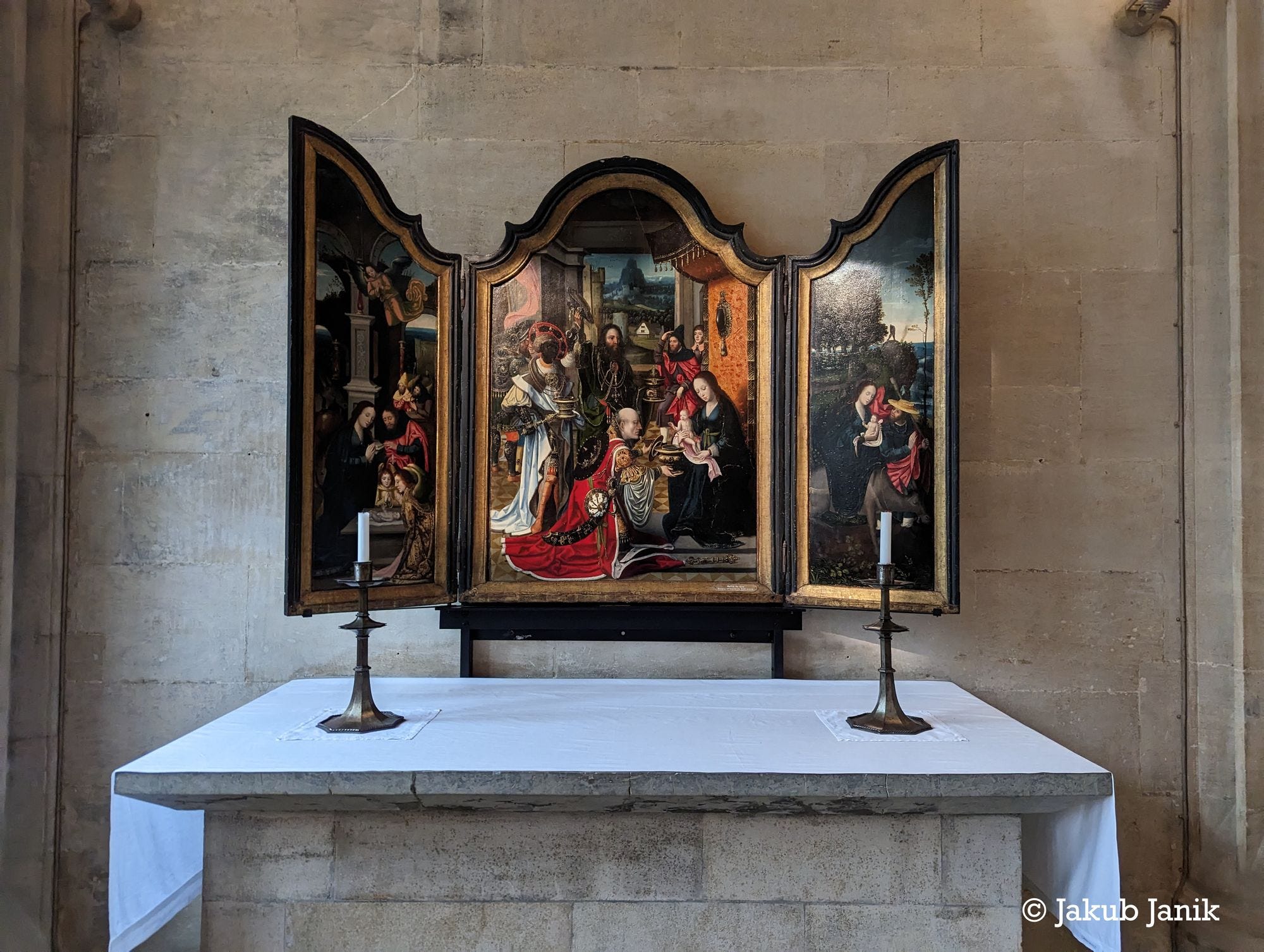 W kaplicy Założycieli znajdziemy tryptyk, którego sceną centralną jest Adoracja Magów, otoczona z lewej - sceną narodzin Jezusa, prawej - ucieczką św. Rodziny do Egiptu. Dzieło namalował anonimowy artysta z grupy tzw. "Masters of the Groote" z Antwerpu i datuje się je na okres pomiędzy 1510 a 1520 r.